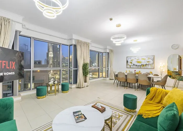 The spacious Serene 2Br Burj Khalifa & Fountain View Dubai apartment is situated merely a 5-minute walk from the Toko Dubai and offers a private swimming pool. This apartment is situated 3.2 km from Financial Centre train station and a short way from Etihad shuttle to Abu Dhabi airport bus station.